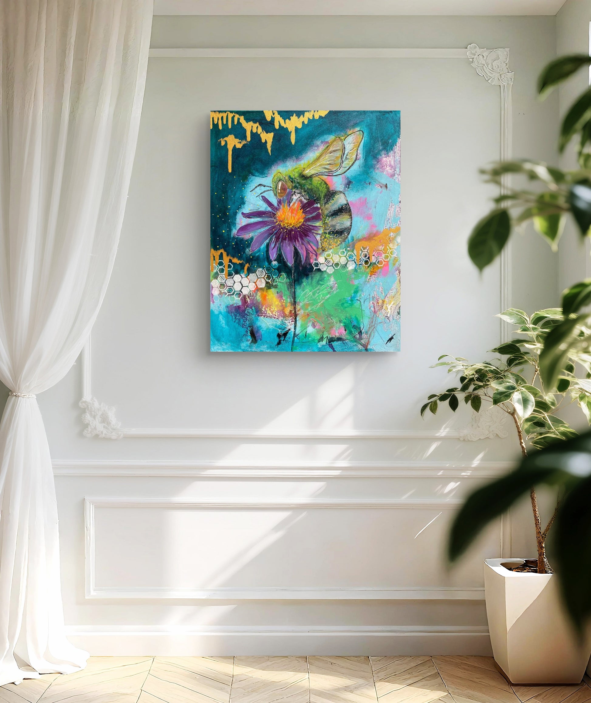 I have named her Tinker bell since the bee's resemblance to the fairy's shimmering green and gold tones, symbolizing the enchanting role bees play in nature as pollinators and life-bringers.